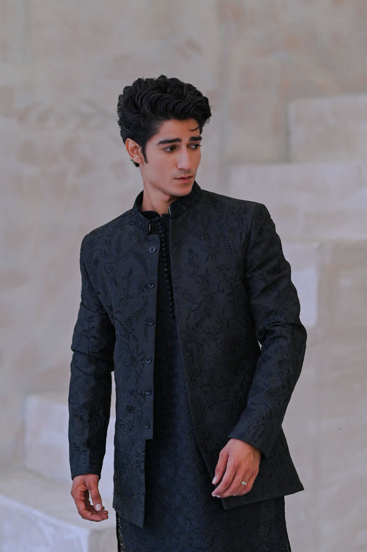 Raheel Qadir – Black Kurta Pajama with Embroidered Prince Coat