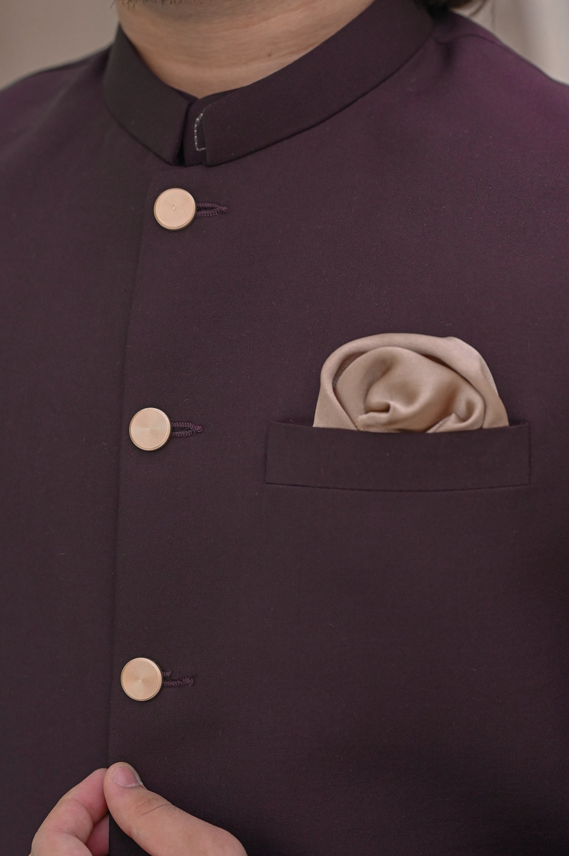Raheel Qadir – Maroon Waist Coat is a bold and elegant piece, perfect for elevating any traditional attire. Crafted with premium tailoring, its rich maroon shade brings a touch of sophistication, pairing effortlessly with shalwar kameez or kurta for weddings, festive gatherings, and formal occasions.